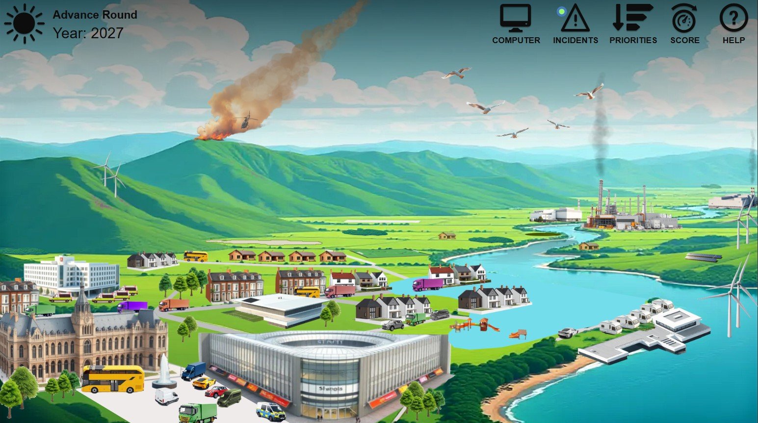Planit-Sustainability models the life of a community. Teams play the role of a local strategic partnership. The partnership need to make the community more sustainable. Win-win-win solutions need to be negotiated and incidents avoided. Finally, after each round, the teams are scored on sustainability indicators and public opinion. Planit Sustainability brings clarity to a complex problem by showing cause and effect. Delegates get to see the ‘big picture’ and to develop win-win solutions, which makes the issues real, relevant, and manageable.